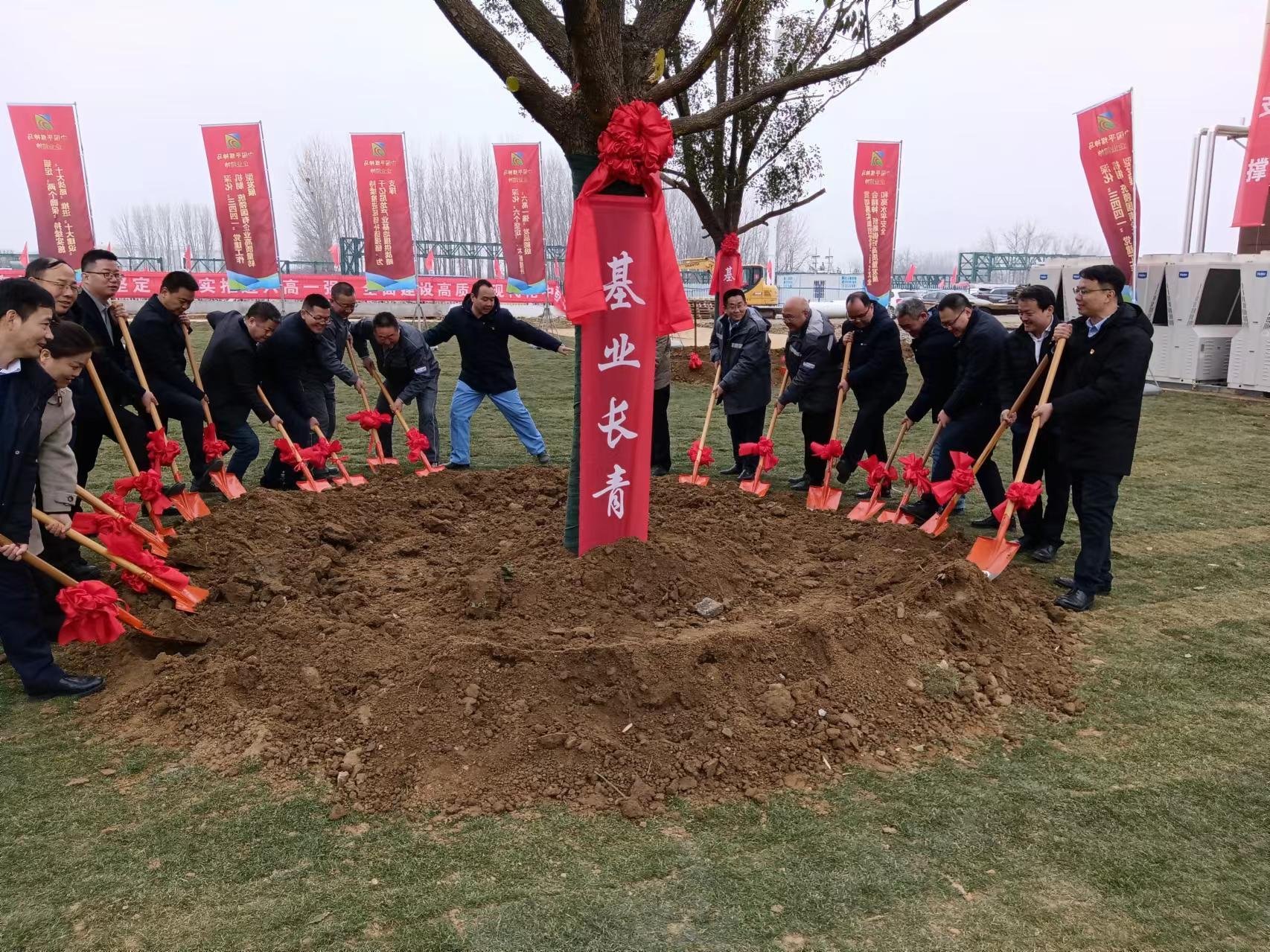 当日下午,王大勇书记带领惠生(中国)工程公司、中国五环化学工程公司、PA旗舰厅流体控制有限公司等优秀制造商和供应商代表来到神马化学基业长青园,共同出席了神马化学基业长青树的培土仪式。王书记说:神马化学氢氨项目建设以来,尤其疫情的三年,神马氢氨项目历经磨难和考验,最终按照预定的时间提前投产和运行,从设计、施工建设以及试车运行,到今天的正式投产,凝聚着所有设计单位、施工公司、安装公司、制造商和的供应商付出,凝聚着大家的汗水和心血。