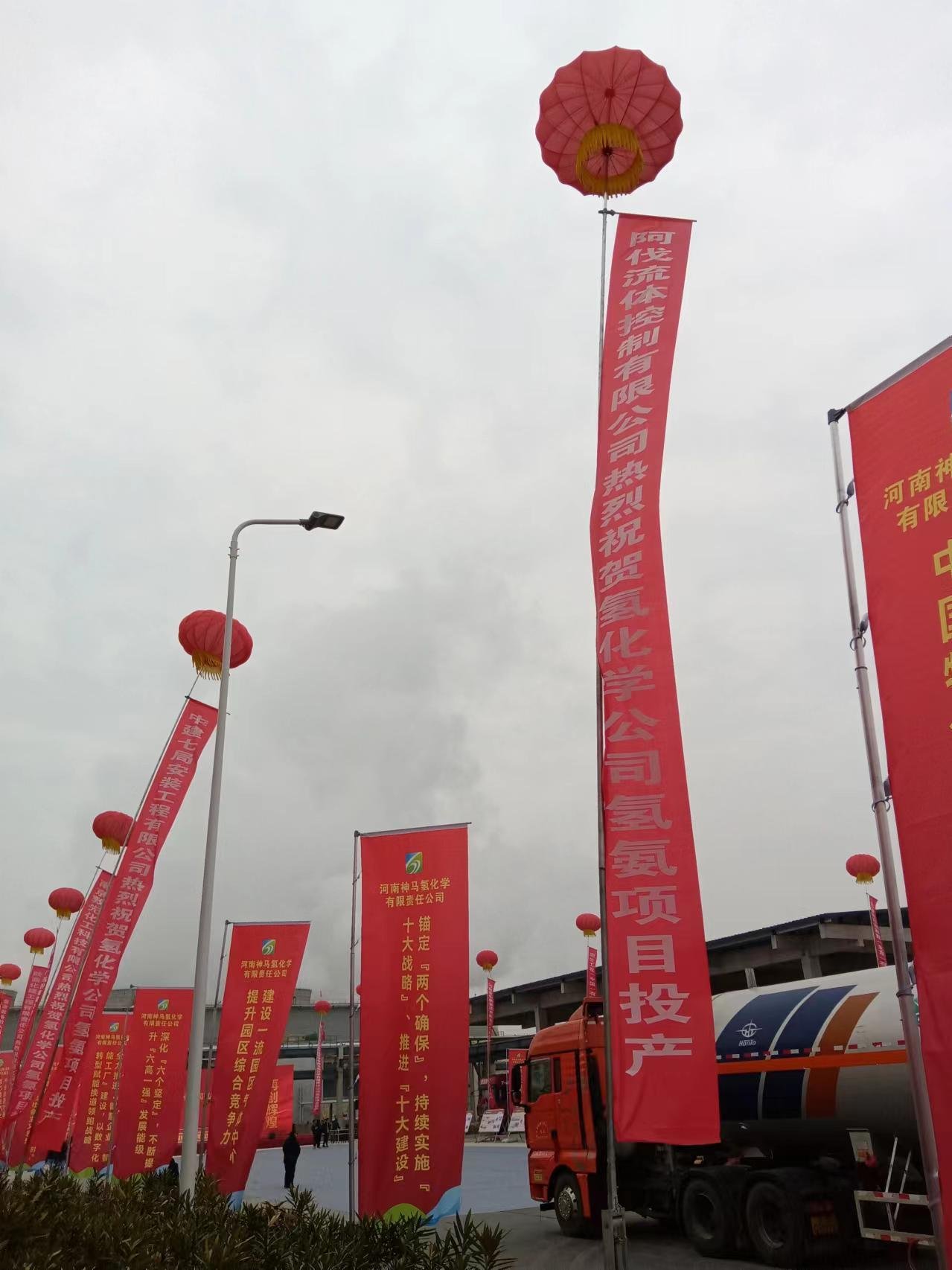 2024年2月28日,中原煤城、尼龙基地、盐业之都平顶山市,春回大地,绿意盎然,平顶山神马尼龙城河南神马氢氨项目基地西北区歌声嘹亮,锣鼓喧天,彩旗飘扬,悬挂红底白色宣传标语的气球点缀在主会场周围。