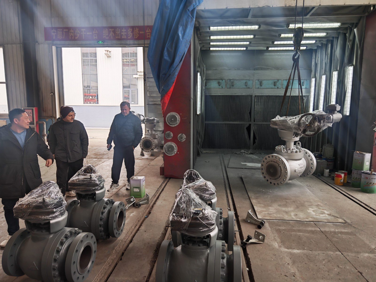 AFA公司董事长谢正泽和技术部、销售部、生产部、质量部等部门负责人接待了来访客人并参加了技术交流。谢正泽董事长向客人介绍了AFA公司发展经历、生产运行、市场开发和远景规划等情况,亲自陪同客人参观了公司各生产车间机加工、球体加工、喷涂、研磨、装配、试压、最终检验、涂装发货等主要工序过程以及加工制造过程中的半成品和生产完成的阀门成品。